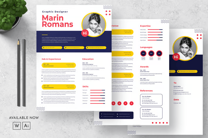 Графикийн дизайнерууд, бүтээлч мэргэжилтнүүд болон орчин үеийн дизайн, тодорхой зохион байгуулалтыг хослуулан карьерын түүхээ танилцуулахыг зорьж буй хэн бүхэнд тохиромжтой. 🟡⚫⚪